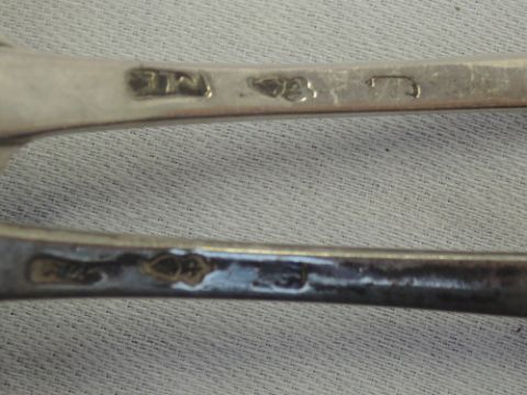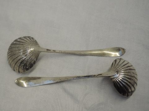 no damage to other ladle. both are tarnished and hallmarks worn