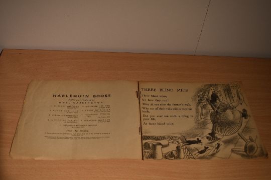 Children's. A Harlequin Picture Book. 15 Nursery Rhymes with drawings by Clarke Hutton. London: Royle Publications, Ltd. No date, circa 1940's. Original card covers, worn. Scarce. (1)
