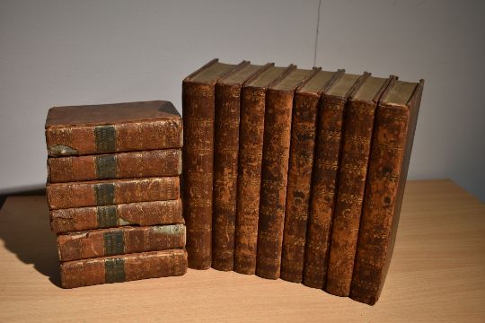 Antiquarian. French History. Rankin, Rev. Alexander - The History of France. London: 1801-1822. Volumes 1, 3, 4, 5, 6, 7, 8, 9. Contemporary diced calf, gilt. Spines rubbed. With; Rabaut - Precis Historique de la Revolution Francaise. Paris: 1807. Volumes 1-6. Contemporary calf, worn. (14)