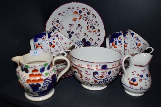 A part tea service hand decorated in Sunderland Lustre design compirising of slop bowls teacups and saucers etc