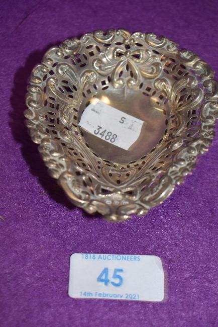 A small Victorian Hm silver pin dish having pierced rapousse decoration