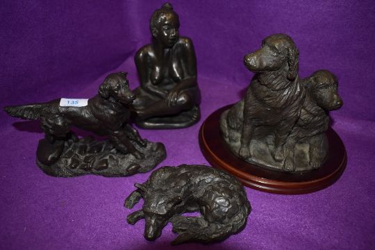 Four figurines,including limited edition Bette M curtis nude study, and three dogs including Heredities golden retriver.