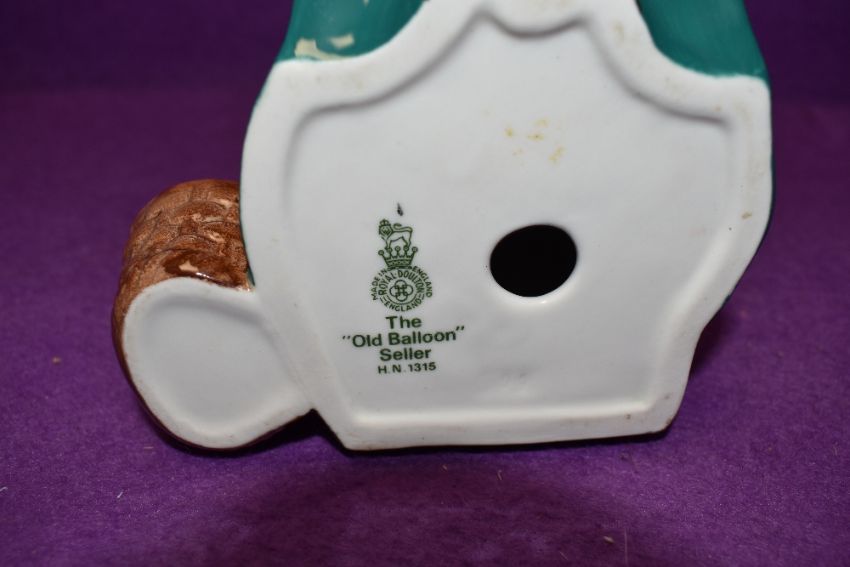 A Royal Doulton figurine of the old balloon seller having green back stamp