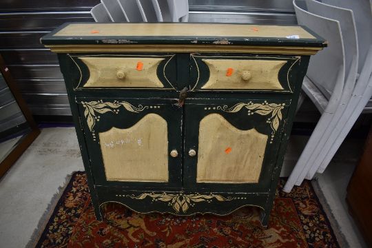 A Shabby chic style painted hall cabinet of shallow form, approx. dimensions H80cm W80cm D20cm