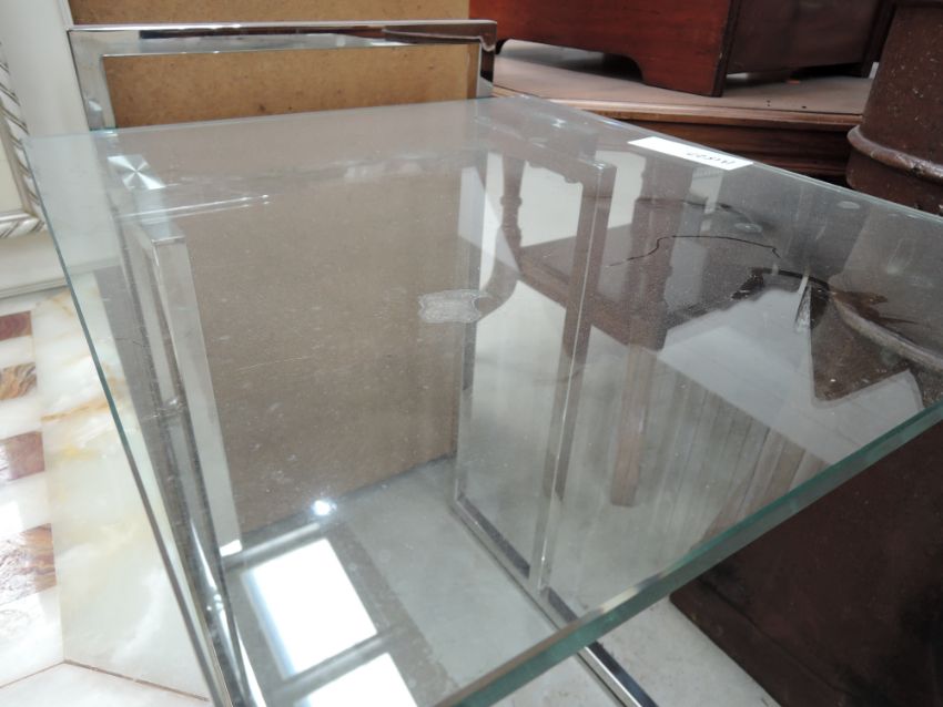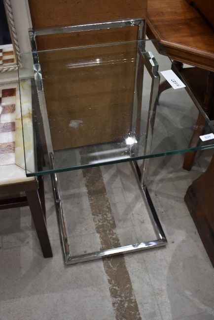 A modernist styled chrome framed and glass side table