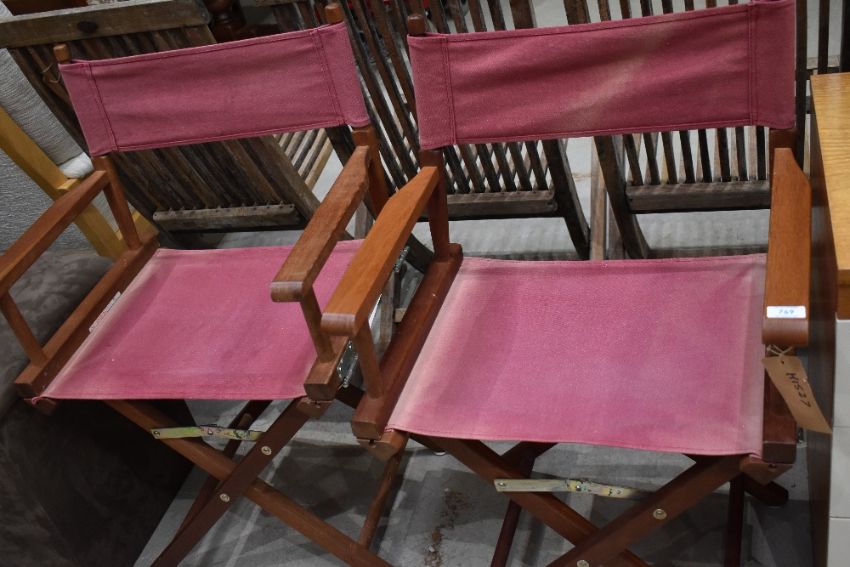Two collapsible directors style garden chairs in iroko wood
