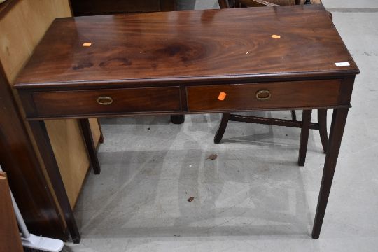 An early 20th Century reproduction Regency style mahogany side or hall way table with frieze drawers on tapered legs, width approx. 95cm
