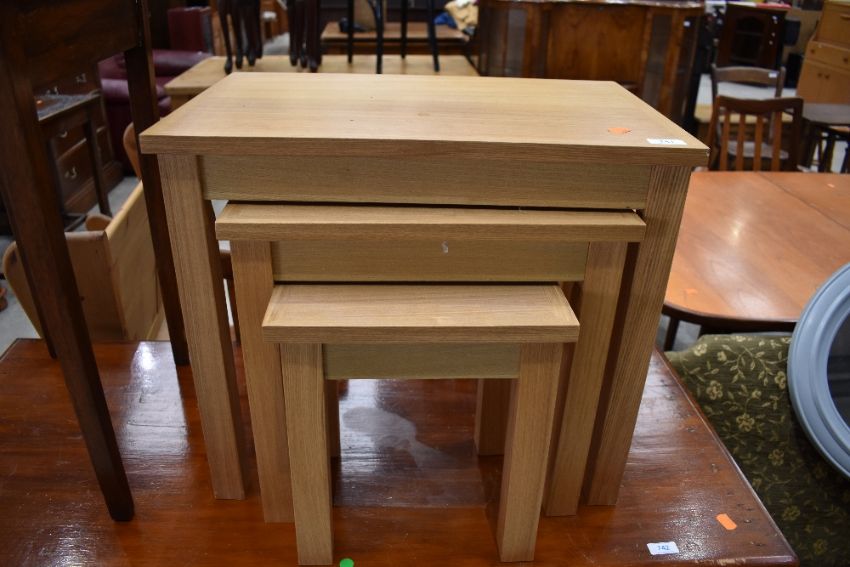 A modern golden oak effect nest of three occasional tables