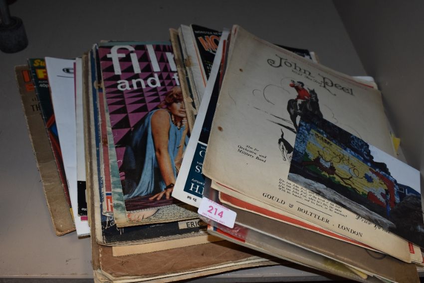 A collection of vintage emphemera including sheet music, Womans own, Picturegoer, Amtuer wireless and Monster fantasy magazines and more.