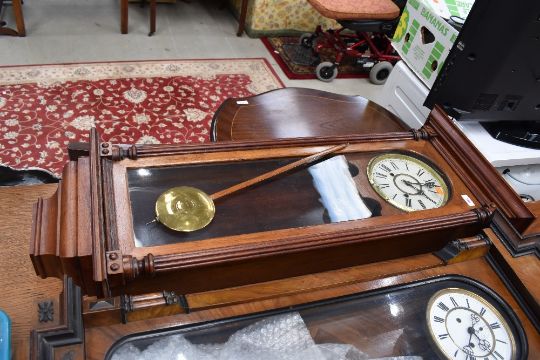 A 19th Century Vienna style wall clock having enamelled dial and labelled Waterbury clock Co. , pendulum present