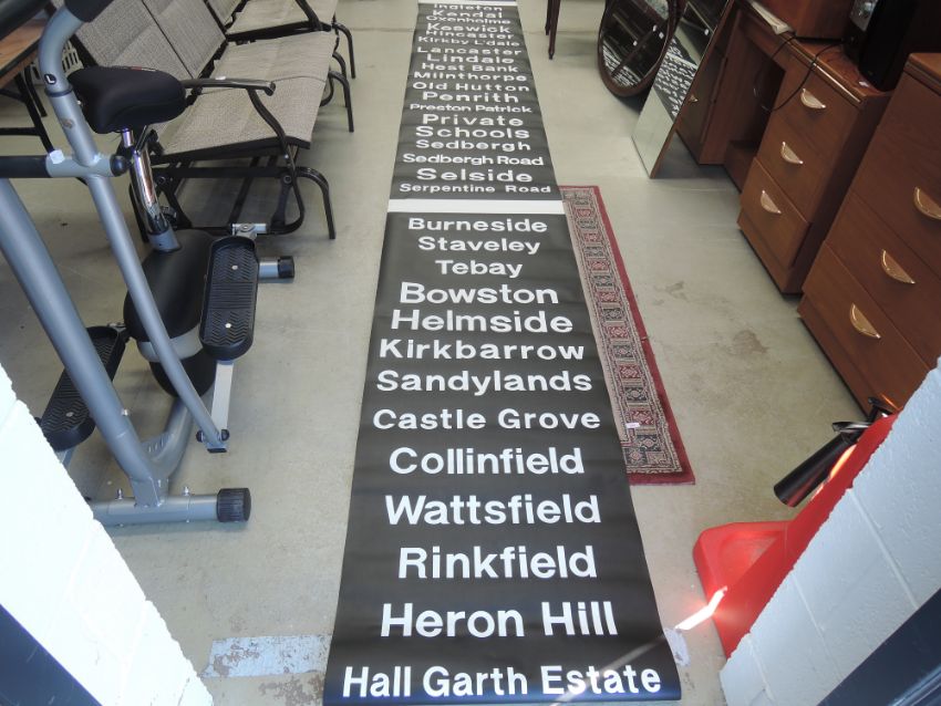 A vintage transport bus train or tram destination blind for Lakeland interest and Dalton