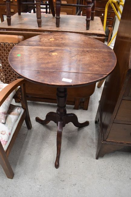 A 19th Century mahogany occasional pedestal table on triple splay legs, top marked and split, diameter approx. 52cm
