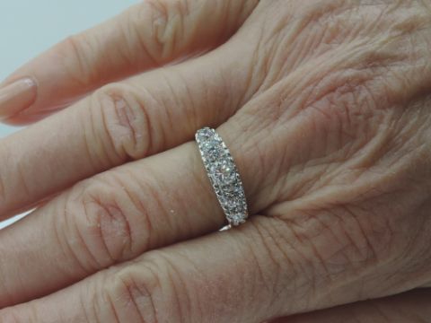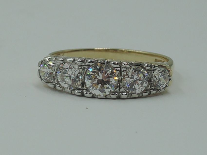 A lady's dress ring having five graduated cubic zirconia in a pave set 'I love you' mount on an 14ct gold loop, size P