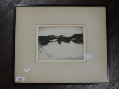 An etching, after Albany Howarth, Sunset on Windermere, signed, 16 x 20cm, plus frame and glazed