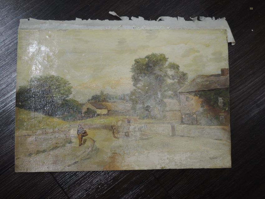 An oil painting, Rollet, village scene, signed 30 x 44cm