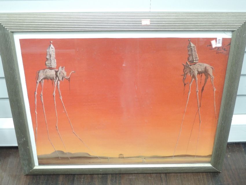 A decotative print, after Dali,The Elephants, 52 x 69cm, plus frame and glazed