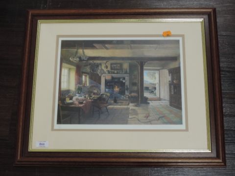 A Ltd Ed print, after Stephen Darbishire, Lakeland cottage interior, signed, 28 x 37cm, plus frame and glazed