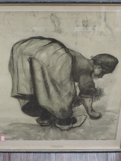 A re-print, after Fletcher, September fruit 1732, 44 x 37, plus frame and glazed, and a re-print, after Van Gogh, Woman Cleaning, 50 x 42cm, plus frame and glazed