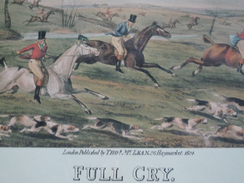 A pair of reproduction prints, after Leon, Full Cry, 28 x 86cm, plus frame and glazed