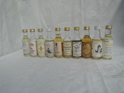 Ten Single Malt Commemorative Whisky Miniatures, Fishermans Friend 40% vol, The Whisky Trail 40% vol, West Highland Walk Way Drovers Dram 40% vol, Captain Burns Glen Craig 1968 40% vol, 150th Tomintoul Highland Games 15 year old 43/500 46% vol, Dufftown Tower 150 years 40% vol, Balmenach 11 year old 1924 1996 75 years Royal British Legion 43% vol, Mauds Macduff 12 year old Guiness Book Of Records 55/100 40%, A Day At The Wells Glengoyne 10 year old 40% vol and Auchentoshan Tem Dram 10 year old 43% vol, all 5cl