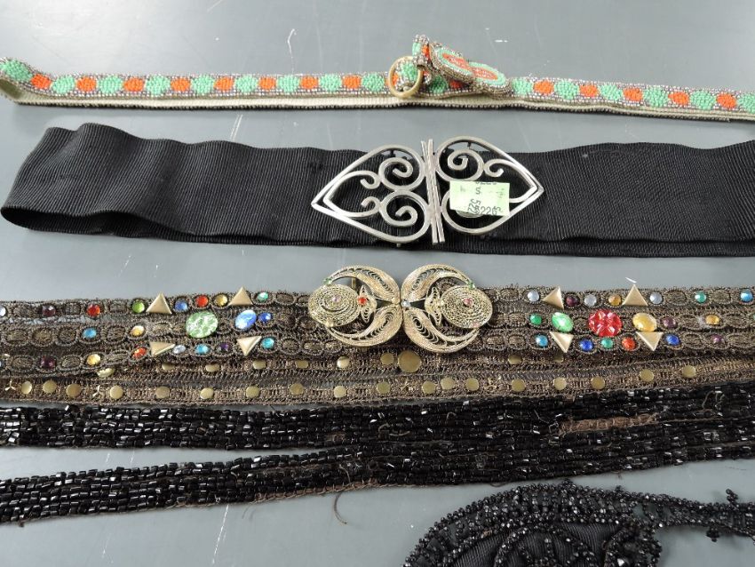 A collection of Art Deco belts and beaded lengths.