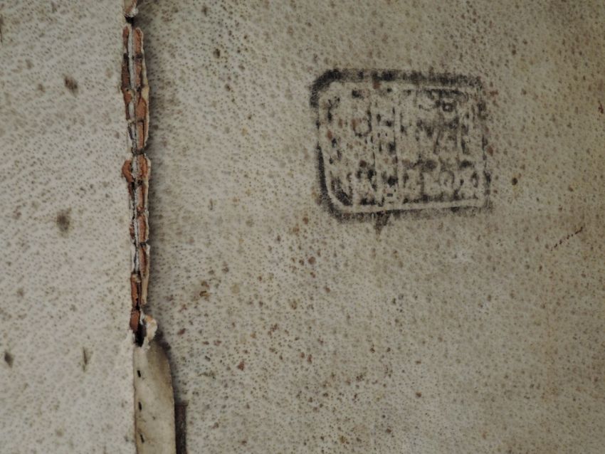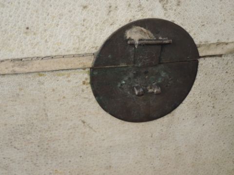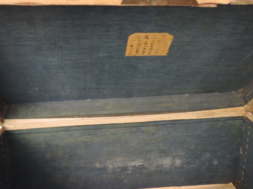 A 19th century Chinese chest or travel trunk,covered with pig skin,AF,damage to lock.