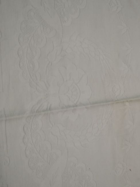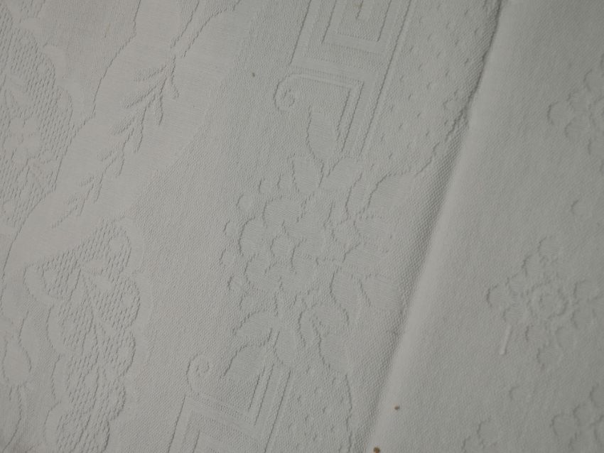 good condition overall, a few age spots, quilt approx 104" x 90" and table cloth approx 52" x 52".