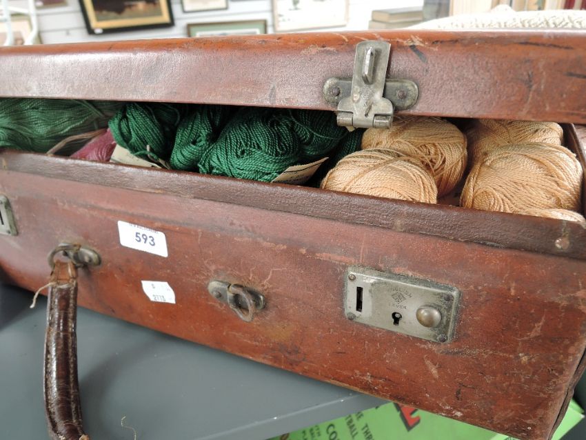 A suitcase full to the brim with fine knitting cotton in various cheerful shades.