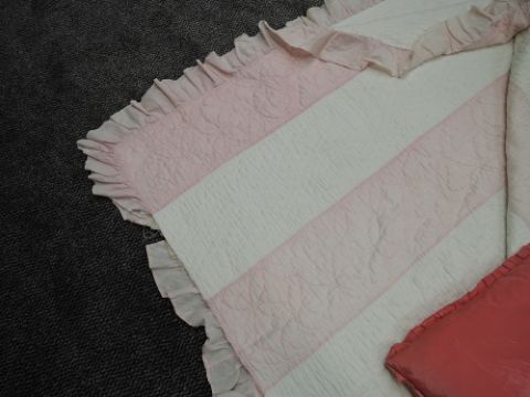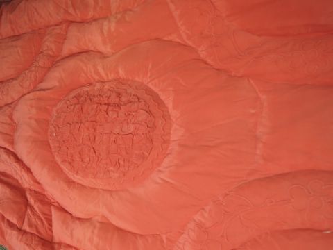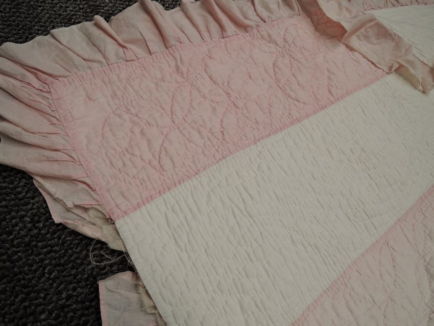 A early 20th century throw, some wear to edging and a 1940s eiderdown.