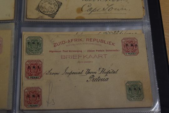 SOUTH AFRICA & STATES QVIC-GVI POSTAL STATIONERY COLLN, M & U + RSA MAXIMUM CARDS Large album with 180-200 items including QVIC postal stationery from COGH, including surcharges, Bechuanaland opts on COGH cards, Natal, Orange Free State, including Postcard stamps (Whole postcards, dies unchecked) Orange River Colony opts/surch, and Transvaal. Stationery for this is a mix of mint and used through to GV era. Range of 1980's Maximum cards, used and 1940's/50's range of postal stationery cards, again a mix of mint and used. Viewing recommended.