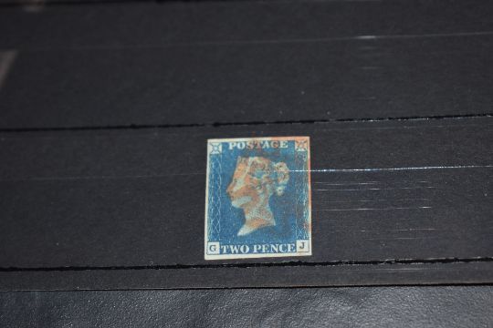 GB 1840, 2D BLUE (PLATE1) 4 MARGINS CORNER LETTERS GJ TIED WITH RED MALTESE CROSS Four margin 2d blue from 1840 (no white line) tied with red maltese cross.