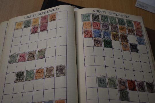 VINTAGE WORLD STAMP COLLECTION, QVIC-GV IN FOUR VOLUMES - M & U. Three old ledger books and springback album with vintage world stamp collection. In brief, one album part full with early period central and latin America. second volume early period European material, third Empire collection with plenty of better noted through out. Including Mauritius, Hong Kong, India, with PO Prince of Wales Camp cover etc. Springback has small amount of M & U, GV-GVI era. Viewing recommended, with a good couple of thousand stamps seen. Odd scattered faults as to be expected with collections of this type.