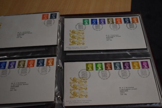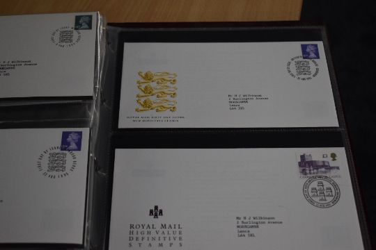 GB 1970's-2000's DEFINITVE FIRST DAY COVER COLLN IN 4 ALBUMS FIne collection of definitive first day covers, all open backed with inserts dating from the 1970's-2000's. Housed in 4 Royal Mail albums, estimated 250+ covers.