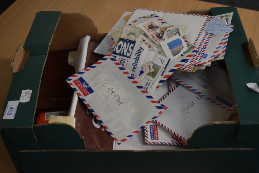 WORLD STAMP COLLECTION IN OLD FRUIT BOX, ALBUMS, PACKETS ETC Various packets with one country lots, could be a few stamps could be hundreds, several world albums, and odd GB face. Plenty to keep you out of mischief!