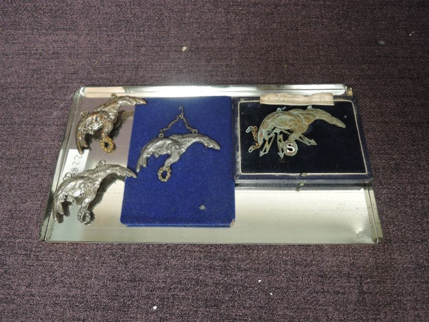 Four WW2 Polish Air Force White Metal Eagle Badges, one boxed