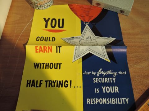 Six 1960's American Cold War Posters, Personnel Protective Measures, Prime Red Target, You Could Earn It, Think About Security, Security To Your Family Means a Roof Over Head and Food on Table and You Can Sleep Tonight Your Airforce is Alert, various sizes and condition