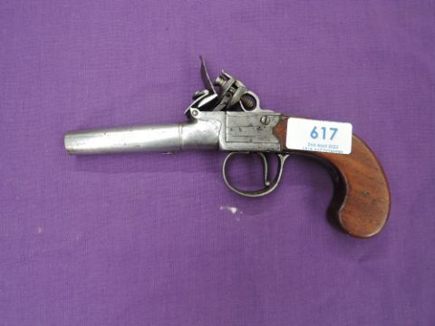 A 18th century Turn Barrel Flintlock Pocket Pistol, named on side of lock Thomas, proof marks under barrel, wooden handle