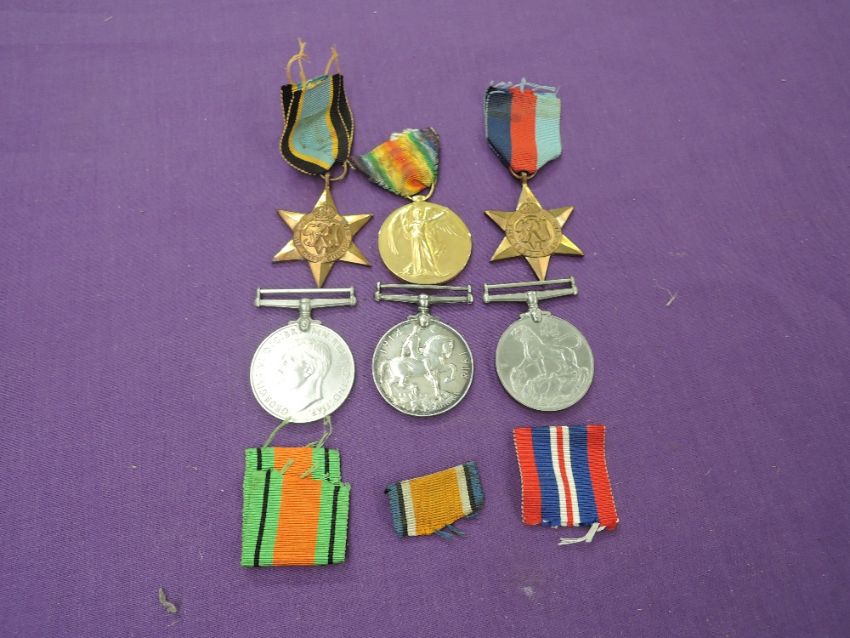 A pair of WW1 Medals to 149246 CPL.R.R.Hutton RAF, War and Victory Medals possibly renamed and four WW2 Medals, Air Crew Europe Star, 1939-45 Star, War Medal and Defence Medals