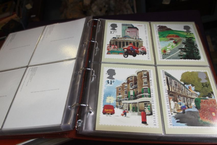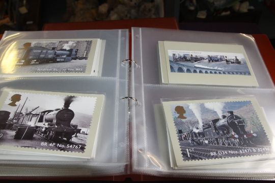 GB, 1970's-2010's COLLECTION OF PHQ CARDS IN 2 ALBUMS Royal Mail album and separate binder of GB PHQ cards, Royal Mail book various sets from late 1970's to 2010's other album is all train related PHQ cards, by sets again etc. 100+ items. Fine clean lot.