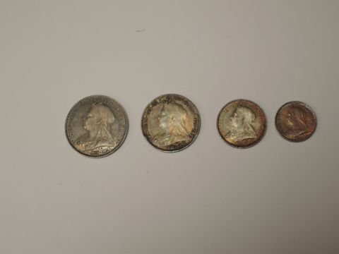 A set of 1894 Queen Victoria Silver Maundy Coins, Four Pence, Threepence, Two Pence and Penny