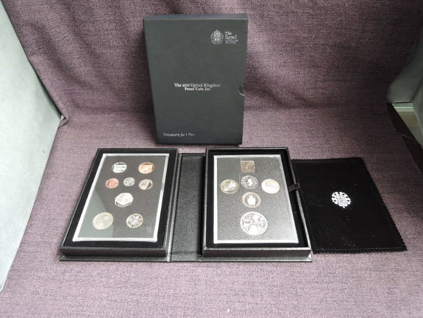 A Royal Mint 2019 United Kingdom Proof Coin Set, 13 Coins and 1 Medal in original folder and slip case