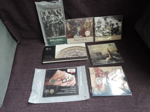Six Royal Mint Brilliant Uncirculated £2 Coins, 2006 Brunel x2 in folding wallet, 2014 500th Anniversary of Trinity House, 2014 100th Anniversary of the Outbreak of WWII, 2015 800th Anniversary of the Magna Carta and 2015 Royal Navy along with a Royal Mint 2008 UK Olympic Games Handover Ceremony £2 Coin all on cards and in unopened plastic wallets also a Royal Mint Collectors Pack £2 Coin Edition containing seven £2 Coins, 14 £2 Coins in total