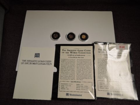 Three 1/20 of an Ounce Gold Coins, Canada Elizabeth II 1996 1 Dollar, Mexico 1992 and Gibraltar Elizabeth II 1995 15 Ecus, all in plastic capsules two with certs