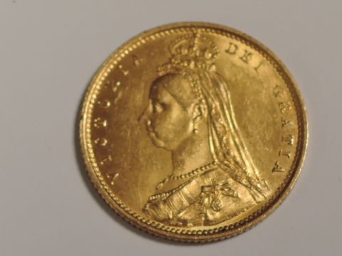 A 1887 Queen Victoria Gold Half Sovereign, Shield Back, Jubilee Head, Royal Mint