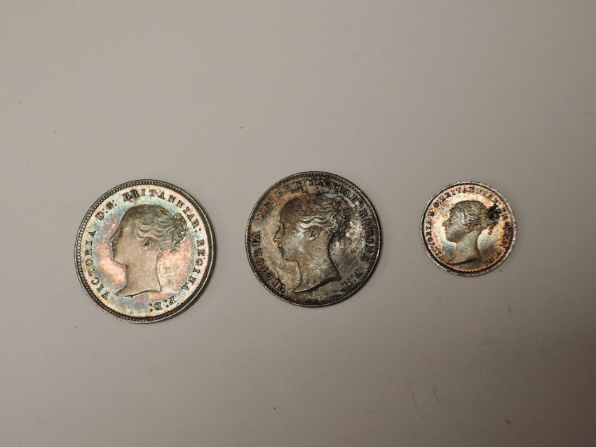 A part set of 1860 Queen Victoria Silver Maundy Coins, Four Pence, Threepence and Penny