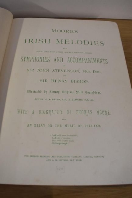 Music. Moore's Irish Melodies. London: The London Printing and Publishing Co. Ltd. Circa 1880. Centenary Commemorative Edition. With plates. Original cloth. (1)
