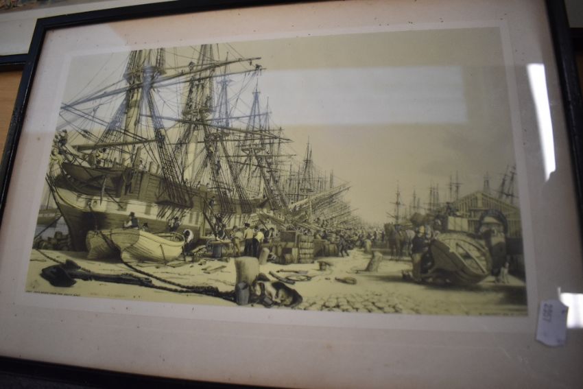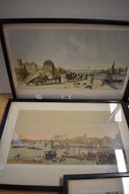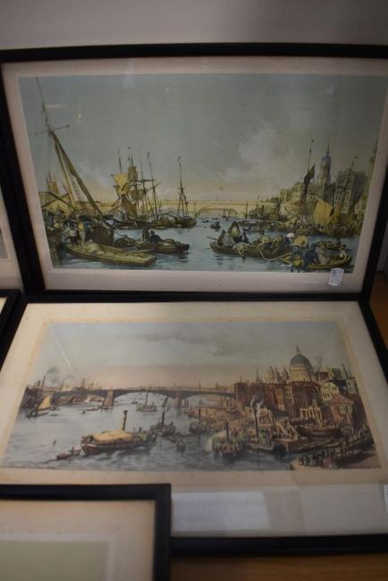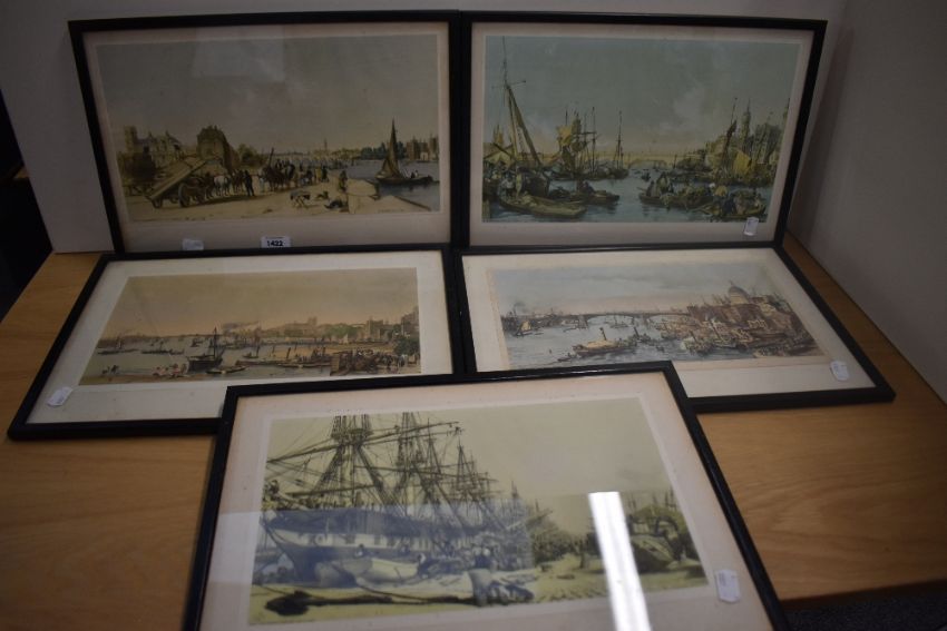W.Parrott (19th Century, British), five coloured antiquarian prints, Maritime scenes to include 'Westminster & Hungerford From Waterloo Bridge', framed and under glass, 30cm x 44cm overall