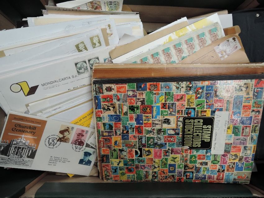 BOX OF COVERS + ODD COLLECTIONS, GB AND WORLD Box with hundreds and hundreds of covers mix of first day and commercially used. GB collections commonwealth and more.