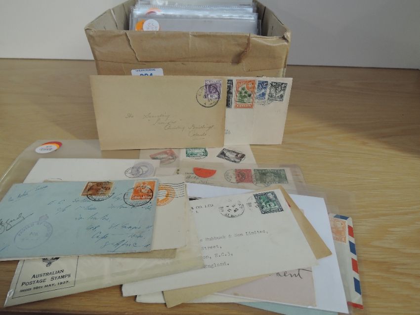 BRITISH COMMONWEALTH, POSTAL HISTORY COLLECTION IN BOX, APX 250 COVERS Box with collection of Commonwealth covers, chiefly postal history, odd first day cover, postal stationery etc. Material dates from late QVIC, although GV & GVI era predominates. Plenty of Caribbean area, North America, and European Commonwealth noted. On the whole clean however odd scattered faults seen