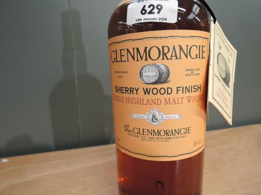 A bottle of 1990's/2000's Glenmorangie Sherry Wood Finish Single Highland Malt Scotch Whisky, Matured for at least 12 years in American oak prior to being finished in sherry Casks., 43% vol, 1 Litre, in original card tube with swing card label